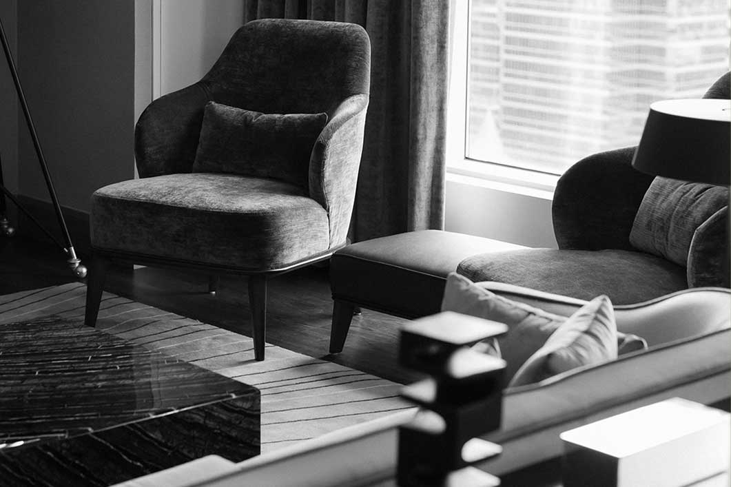 THE RITZ CARLTON IN TORONTO NEEDED CASEGOODS AND SEATING TO COMPLEMENT ITS MODERN ARCHITECTURE. INSPIRED BY THE TORONTO INTERNATIONAL FILM FESTIVAL AND THE CITY’S ENTERTAINMENT DISTRICT, ALLEN CHAN’S DESIGN COMBINED A CONTEMPORARY AND TRANSITIONAL AESTHETIC. OUR FINISHED PRODUCT INCORPORATED DETAILS LIKE AN LED-LIT BED AND RICH WALNUT TO CREATE A SPACE LIKE NONE OTHER.